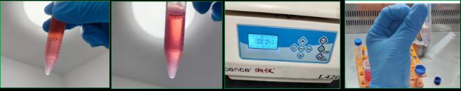 3、接下來將離心管進行300g,4℃,離心5min,離心完通常會有這兩種情況: