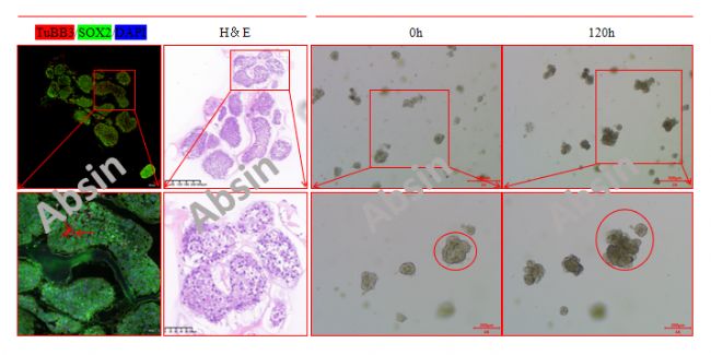 1、基質膠包被培養板:取出6孔板/12孔板,每孔內加入1mL/0.5mL即用型基質膠(abs9410),輕輕晃動6孔板/12孔板使基質膠完全覆蓋皿底,置于37℃培養箱中孵育1h-2h,實驗前拿出并置于超凈工作臺/生物安全柜中室溫下平衡20min。如果暫時不用,可用Parafilm封口后2-8℃儲存,并于1周內使用。