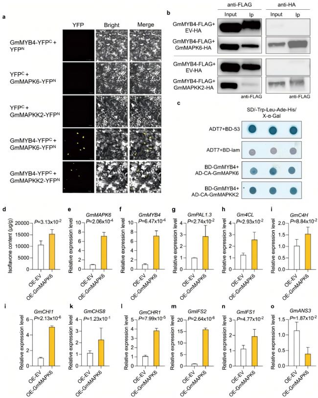 核心發現三:GmMAPK6通過磷酸化GmMYB4,激活異黃酮合成通路