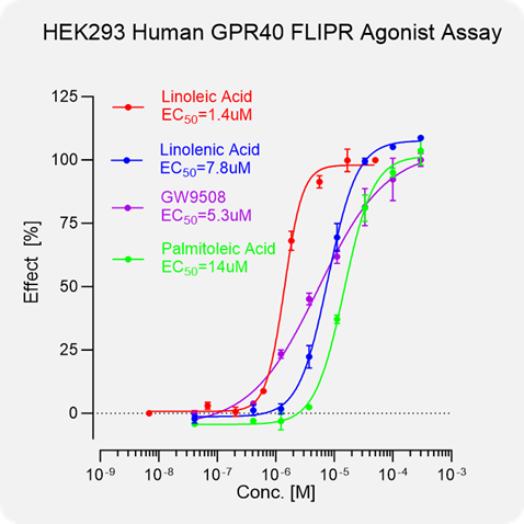 GPR40是一種G蛋白偶聯(lián)受體(GPCR),主要表達(dá)在胰腺β細(xì)胞和腸道L細(xì)胞中,能被中長鏈游離脂肪酸(C8–C22)激活。當(dāng)被激活時(shí),GPR40通過Gq/11蛋白通路刺激細(xì)胞內(nèi)鈣離子上升,從而增強(qiáng)葡萄糖依賴性的胰島素分泌。在腸道中,它還能促進(jìn)GLP-1、GIP等腸促胰素的釋放。這意味著:GPR40既能促進(jìn)胰島功能,又能調(diào)節(jié)腸-胰軸,對(duì)糖尿病、肥胖和代謝綜合征都有潛在作用。