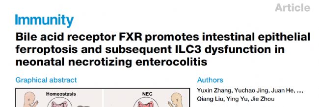 Bile acid receptor FXR promotes intestinal epithelial ferroptosis and subsequent ILC3 dysfunction in neonatal necrotizing enterocolitis. Immunity. 2025 Mar 1 .