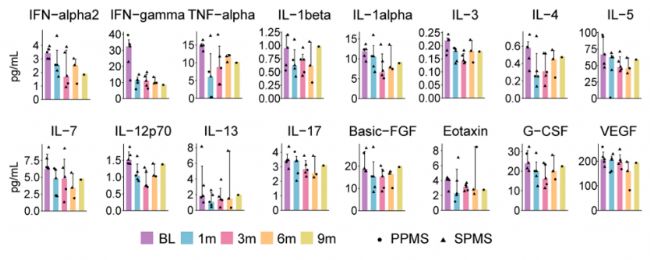 Luminex檢測不同時間點腦脊液中的細胞因子變化