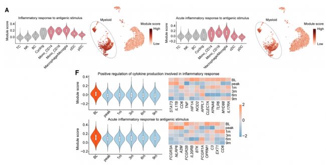 scRNA-seq 揭示的髓系細胞炎癥通路下調
