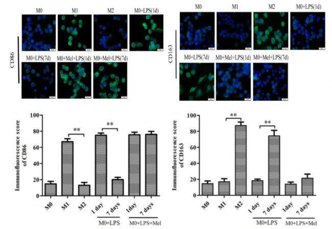 應用案例:脂多糖(LPS)誘導RAW264.7細胞極化為M1型,用于研究褪黑素協同 LPS 調控巨噬細胞防治腫瘤的作用。