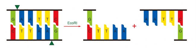 圖2 EcoRI切割DNA形成粘性末端DNA片段