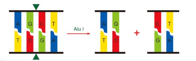 成功的酶切和有效的連接是分子克隆實驗圓滿完成的必要條件。分子克隆技術中最常用的是Ⅱ型酶,切割后得到的是帶粘性末端或平末端的線性DNA。粘性末端,即限制性內切酶在DNA雙鏈上交錯切割,形成的核苷酸順序互補的,可形成氫鍵的末端(見圖2);平末端,限制性內切酶在DNA雙鏈的相同位置切割DNA分子,這樣形式的斷裂是形成具有平末端的DNA片段(見圖3)。