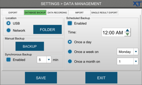 OsmoTECH 系列滲透壓儀具備多種數據備份方式,滿足不同組織的需求,比如手動備份和通過設定自動定期備份至網絡文件夾,以及同步備份到網絡文件夾,最大限度的避免數據丟失。當發生災難后,備份數據可通過 USB 或者網絡文件夾實現完整恢復。