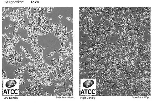 LoVo細胞于1971年建系,來源于一名56歲白人男性結直腸癌患者的左鎖骨上區腫瘤轉移灶。該細胞腫瘤基因C-myc、K-ras、H-ras、N-ras、Myb、sis和fos表達陽性,且表達腫瘤特定的核基質蛋白CC-3和CC-4,可在裸鼠體中成瘤。