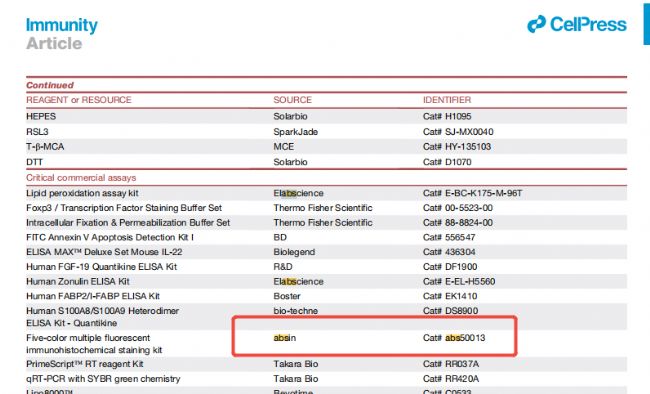 并且用到了Absin公司提供的五色多重熒光染色試劑盒 #abs50013
