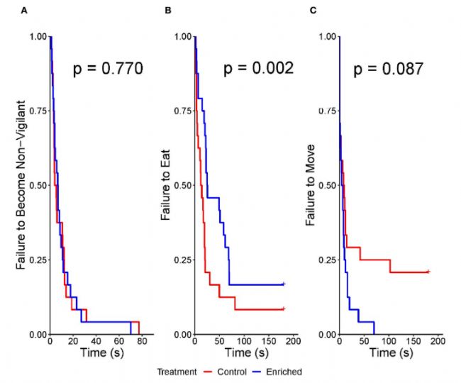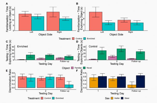 總的來說,在圍場斷奶期間提供環境豐容措施改變了肉牛犢的行為,無論是在新物體識別測試中,還是在注意力偏向測試中。與對照組的牛犢相比,環境豐富措施還增加了家畜欄中的飲水和相互梳理行為。未來,需要進一步研究對這些動物的情感狀態的評估,目前仍無法確認得出的結果能說明提供豐容措施牛犢的福利是得到了改善還是受損。