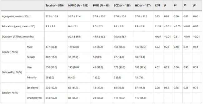 表1. 樣本的社會人口學和臨床特征(N = 579)
