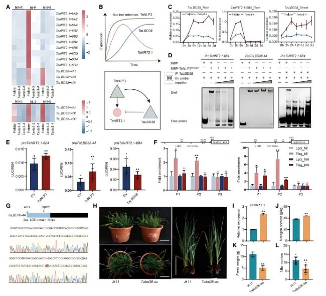圖1 TaNRT2.1-6B4 是受TaNLP3正調控的關鍵硝酸鹽響應標記基因