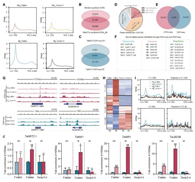 圖6 TaNLP3 通過調控其靶基因處的染色質可及性,進而調控硝酸鹽響應基因的表達