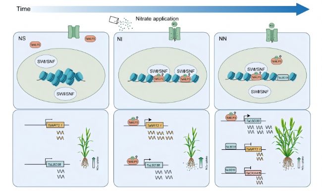 該研究闡明了TaNLP3作為核心調控因子,通過與SWI/SNF復合體協作重塑染色質可及性,借助不一致性前饋環實現硝酸鹽吸收與分蘗形成的時空協同。不僅深化了對作物氮信號網絡的理解,也為通過分子設計培育“高產高效”小麥品種提供了新靶點與遺傳資源。