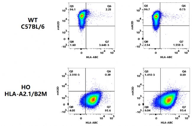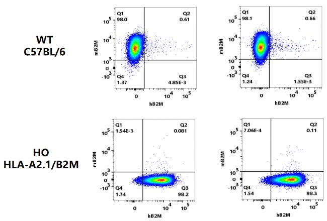 圖4 WT C57BL/6和HO HLA-A2.1/B2M(2)小鼠血液中人源HLA-ABC的表達。