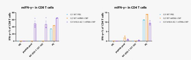 圖6 hHLA-A2.1限制性顯性表位NY-ESO-1157-165刺激后,僅HLA-A2.1/B2M小鼠產生大量IFN-γ陽性CD8 T細胞。