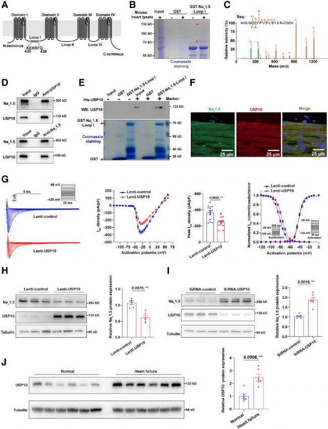 圖1. USP10被鑒定為Nav1.5的新型負(fù)調(diào)控蛋白
