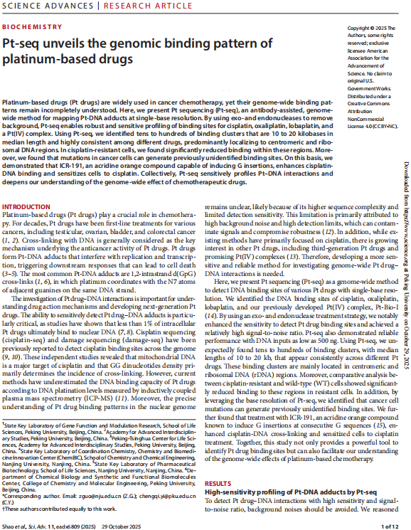 近日,北京大學使用IPHASE品牌產品:HGPRT 基因突變試劑盒在《Science Advances》權威期刊上發表文章《Pt-seq unveils the genomic binding pattern of platinum-based drugs》,影響因子12.5!