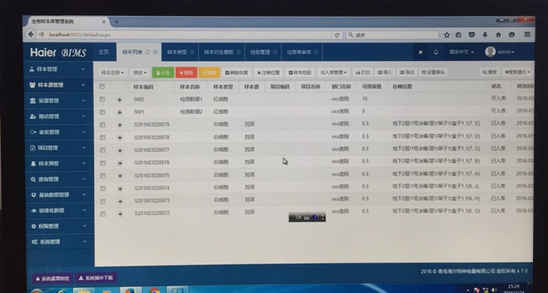 MIBS樣本信息化管理系統、COLD CLOUDS溫濕度監控系統