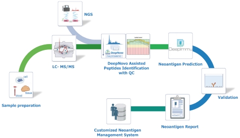 百蓁生物DeepImmu新抗原發現平臺通過建立高通量高靈敏度樣品前處理及質譜檢測技術流程,整合Dee...
