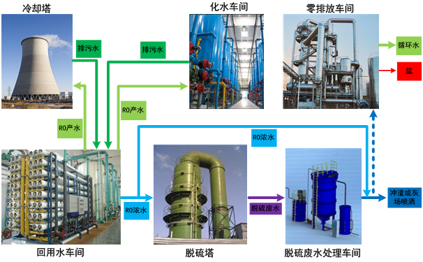 循環水排污水:產水用作循環水補充水,濃水沖灰