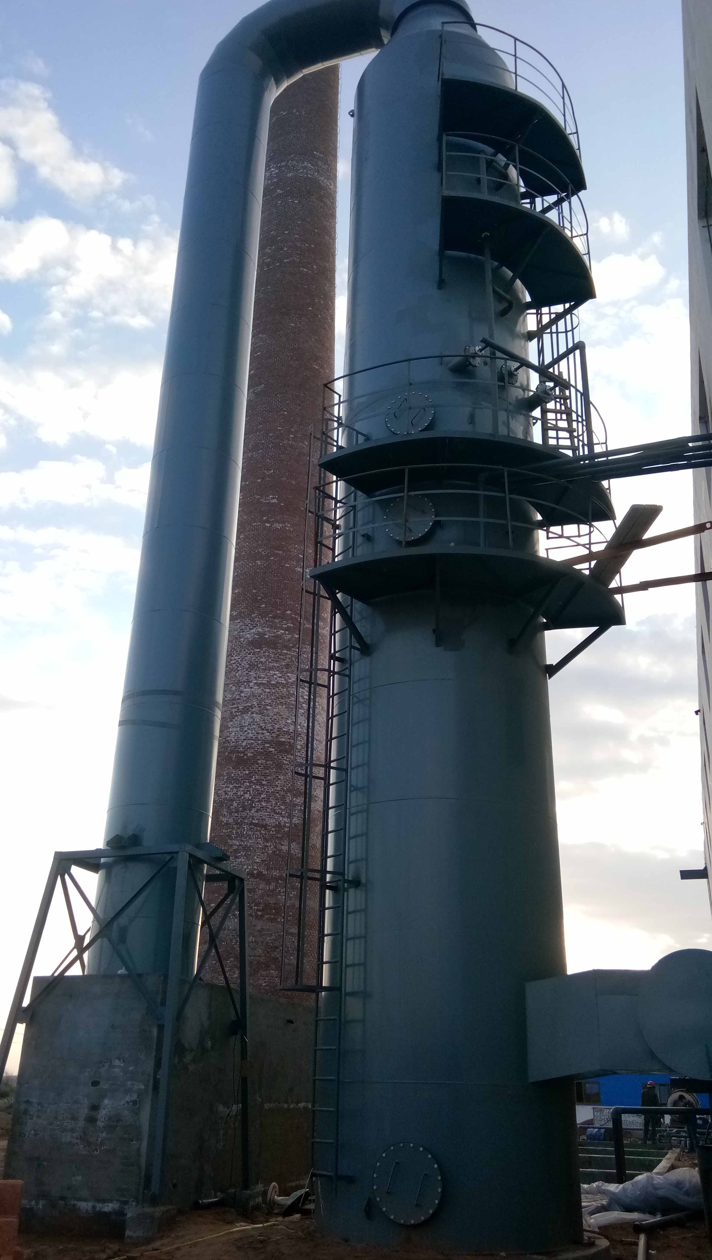 酸性廢氣的凈化,主要是將酸性廢氣用三級(jí)堿液噴淋,再由煙囪排放。用該方法吸收酸性廢氣時(shí),在真空抽氣栗上安裝密閉罩,將車間內(nèi)氣體排放,進(jìn)入裝有填料的噴淋塔。該工藝去除酸性廢氣的效率可達(dá)90%以上。