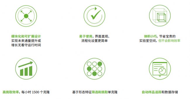 分子克隆是將 DNA 組裝到載體中,利用大腸桿菌作為產生 質粒的宿主。使用 QPix XE 自動化執行繁復的菌落挑取過 程,科學家可以自由地分析數據,而不是執行重復、耗時的 任務。提高通量和速度,同時通過完整的審計追蹤和樣本 追蹤提高準確性。